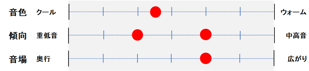 左右への広がりはあまり感じられませんがバランスが取れていて中立よりのクールな音色です。