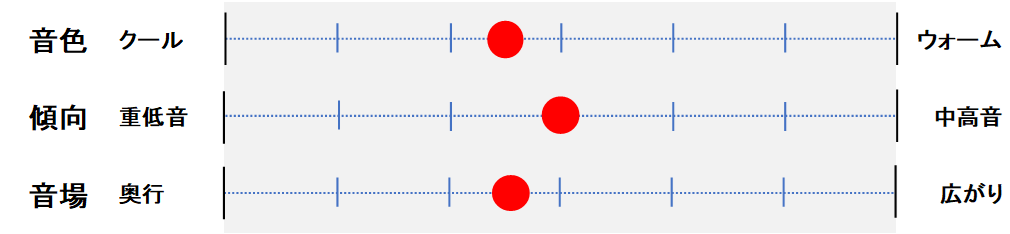 多ドライバー構成にありがちな音の濁りが少なく、見通しの良いクリアな音質です。左右の広がりは控えめですが、音の立ち上がりが早く、明るく元気な印象。全体的にはニュートラル寄りのクールな音色で、テンポの速い曲やエネルギッシュな楽曲との相性が良好です。